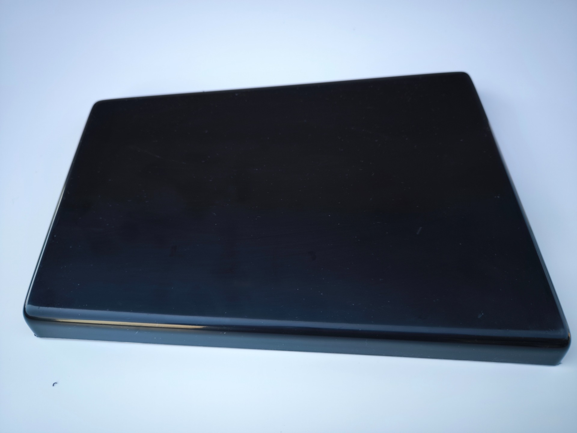 A test alapanyaga 3 mm vastagságú ütésálló műanyag (polisztirol), ez a vastagság a megmunkálás során forma függvényében változik, vékonyodik! A felhasznált alapanyag védőfóliával ellátott fényes felületű, gyártói besorolása "nem UV álló", ezért utólagos UV álló réteg felvitele javasolt.(lakkozás, vtn stb.)